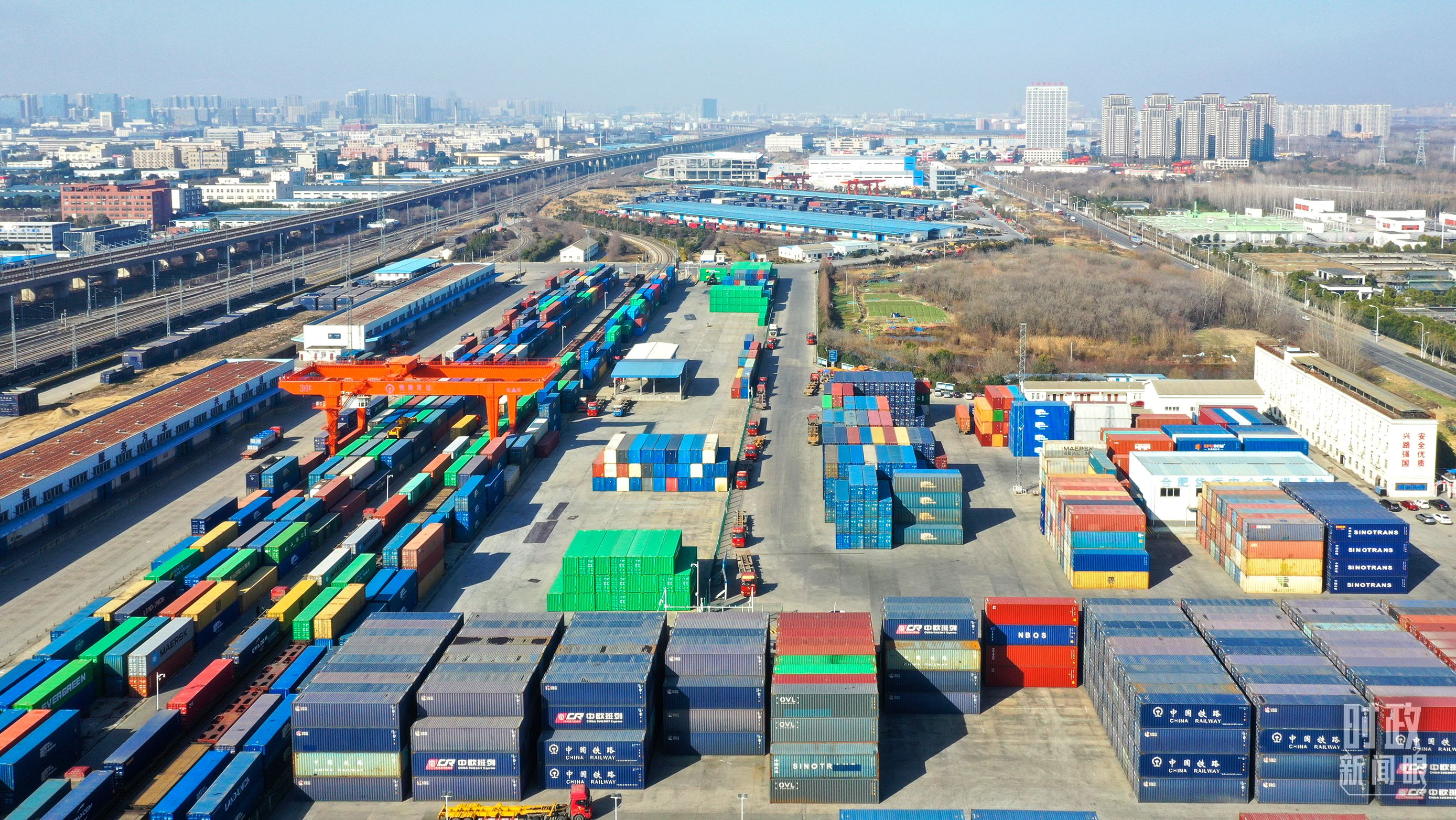 △合肥春节期间铁路货运“不打烊”,中欧班列货运集装箱集结待发。