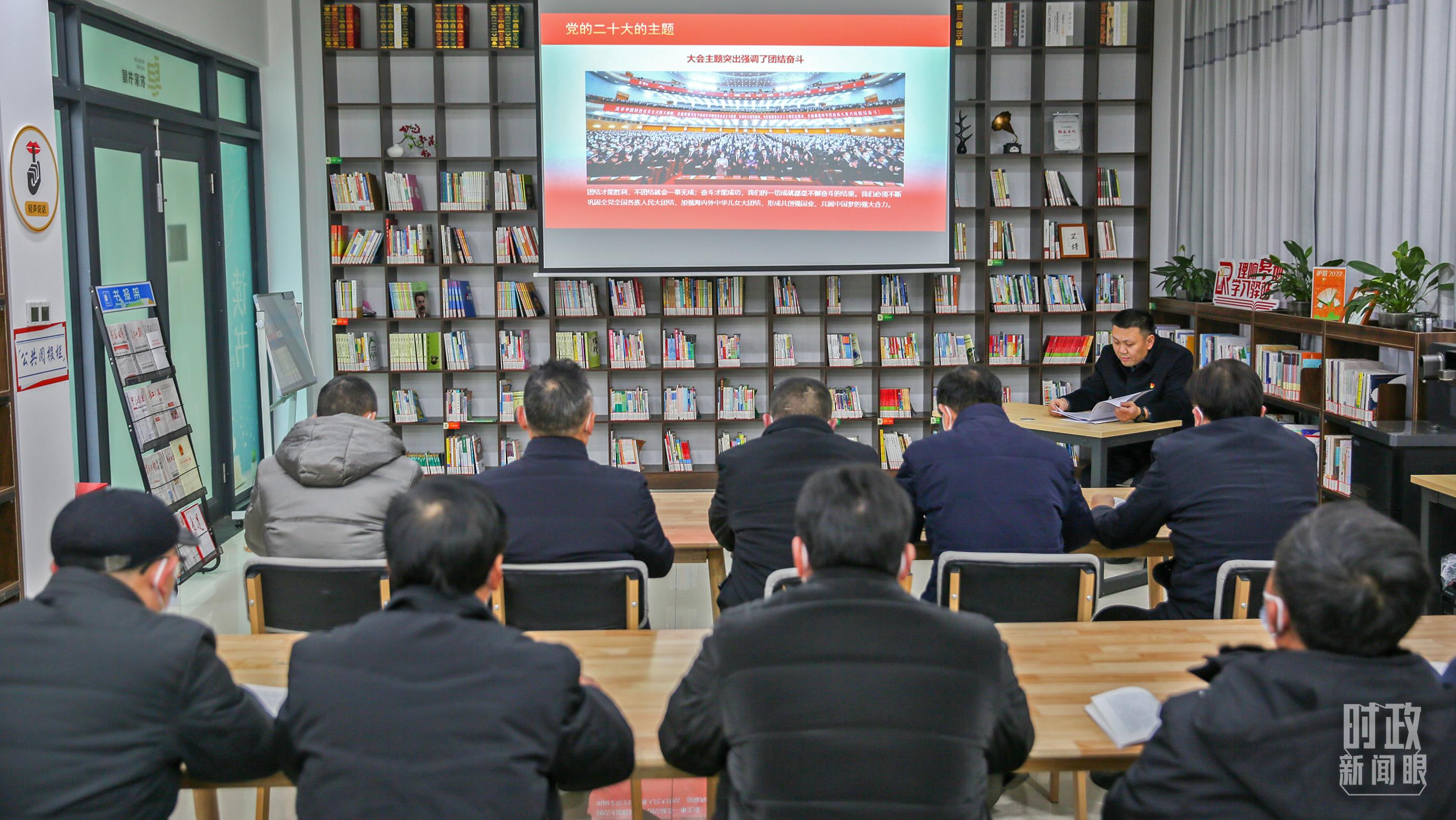 △2023年1月6日,江苏南通的一座农家书屋内,正在举办共读党的二十大相关书籍活动。