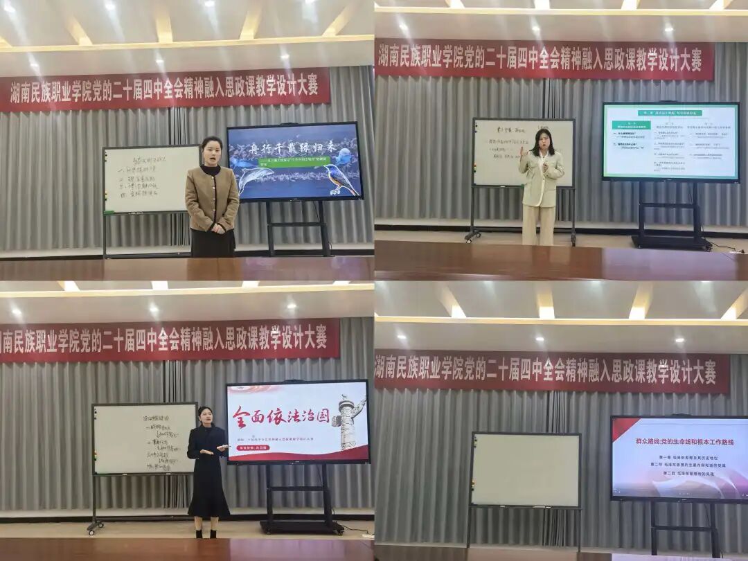 近日,韦德官方网站在可桢楼204会议室举办党的二十届四中全会精神融入思政课教学设计大赛决赛。公司党委书记刘朝晖、副董事长王永等校领导出席活动,并特邀湖南铁道职业技术公司贺彩霞、长沙民政职业技术公司马也名、重庆城市管理职业公司马璨三位全国高校思想政治理论课教学展示活动特等奖获得者担任评委。bevictor伟德官网全体教师到场观摩。